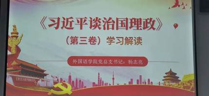 会上,杨志亮书记讲解了《习近平谈治国理政》第三卷的整体内容,并指出每位党员都应学习并准确把握《习近平谈治国理政》第三卷的精神要义,深入领会习近平新时代中国特色社会主义思想。