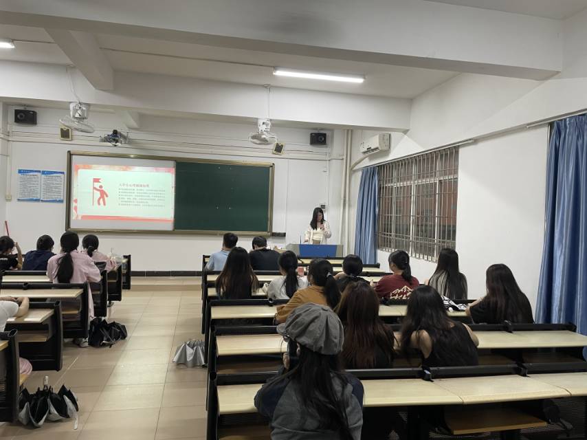班会内容主要从“正确理解心理健康”、“大学生心理健康标准”、“大学生常见的心理问题”以及“大学生如何面对心理问题”四个方面展开,以便提高同学们对心理健康的重视,增进对心理知识的了解。在讲解相关知识后,各班班会主持人引导同学们正确看待心理问题,学会自我调节。与此同时,班会主持人也提醒同学们重视心理健康,积极寻求解决方式,如不要急于“诊断”,合理宣泄,调整自己的生活规律以及学会沟通等。