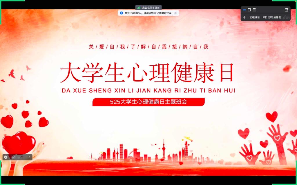 为加强心理健康教育,增强同学们的心理健康意识,培养积极健康的心态,122cc太阳集成游戏于5月26日晚通过线上线下相结合的方式开展“大学生心理健康”主题班会。我院学生积极参加。
