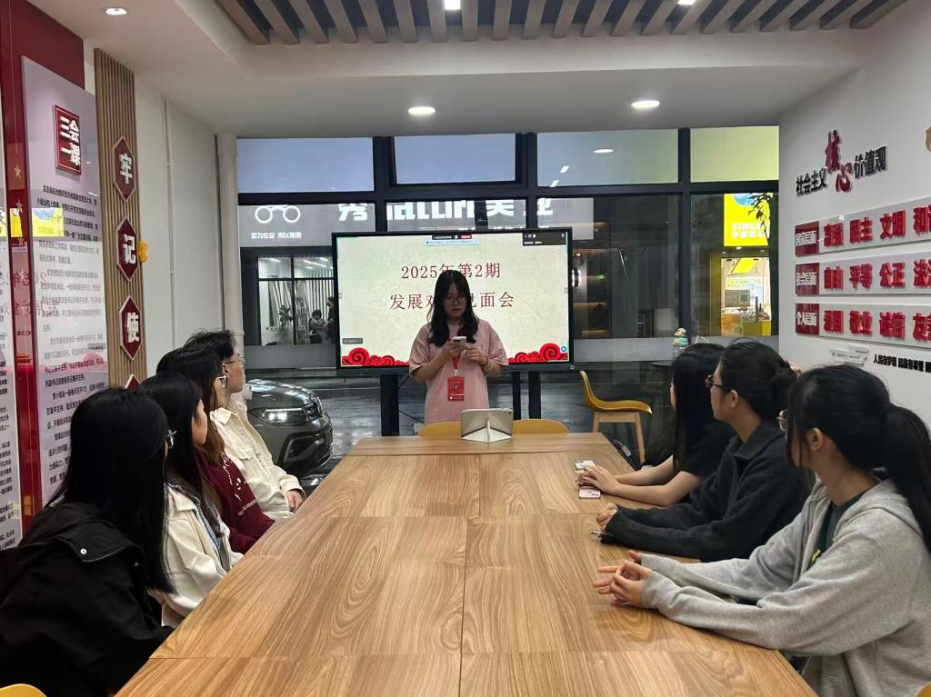 为扎实推进党员发展工作,强化党员发展对象的理论素养与思想认识,11月3日,122cc太阳集成游戏学生党支部在一站式学生社区第一社区活动室召开2025年第2期党员发展对象见面会。本次会议由党务干部梁紫颖同志主持,全体2025年第2期党员发展对象参与。
