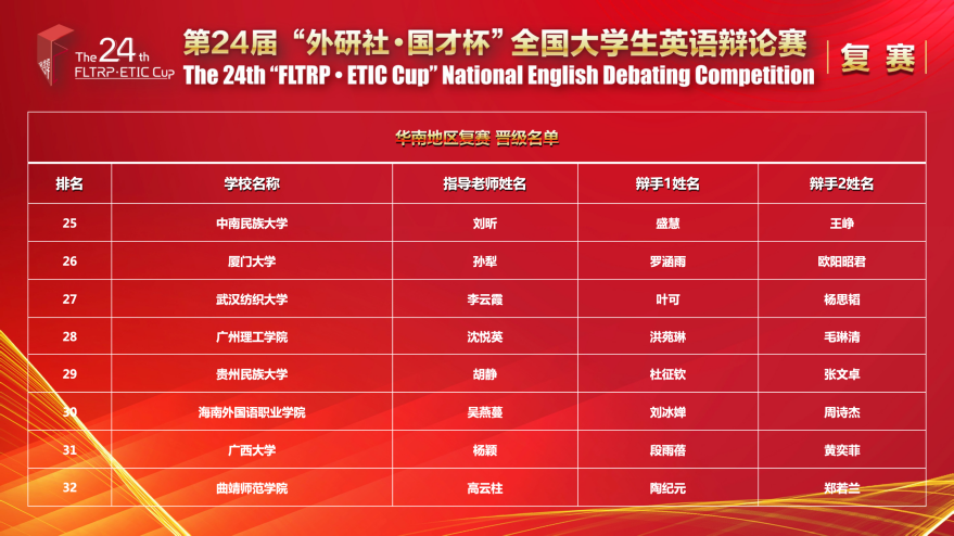 “外研社·国才杯”全国大学生英语辩论赛华南赛区落幕