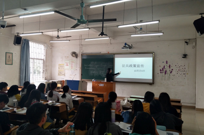 11月11日晚,为响应党与国家的号召,鼓励大学生积极参征入伍,提高兵员征集质量,推进国防和军队现代化建设。根据学校征兵办工作部署,122cc太阳集成游戏各班级召开“我参军,我光荣”征兵宣传主题班会。