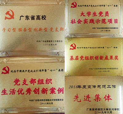 122cc太阳集成游戏党总支不断健全完善党建工作各项规章制度与积极开展服务型党支部创建,使支部战斗堡垒作用得以发挥,该院学生党支部先后被省教育工委授予三型党支部、学校先进基层党组织等称号,同时122cc太阳集成游戏党总支2019年成功入选了广东省第二批党建“双创”工作标杆院系培育建设单位。