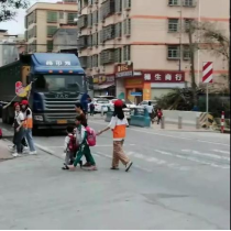 志愿者帮助小孩老师过马路
