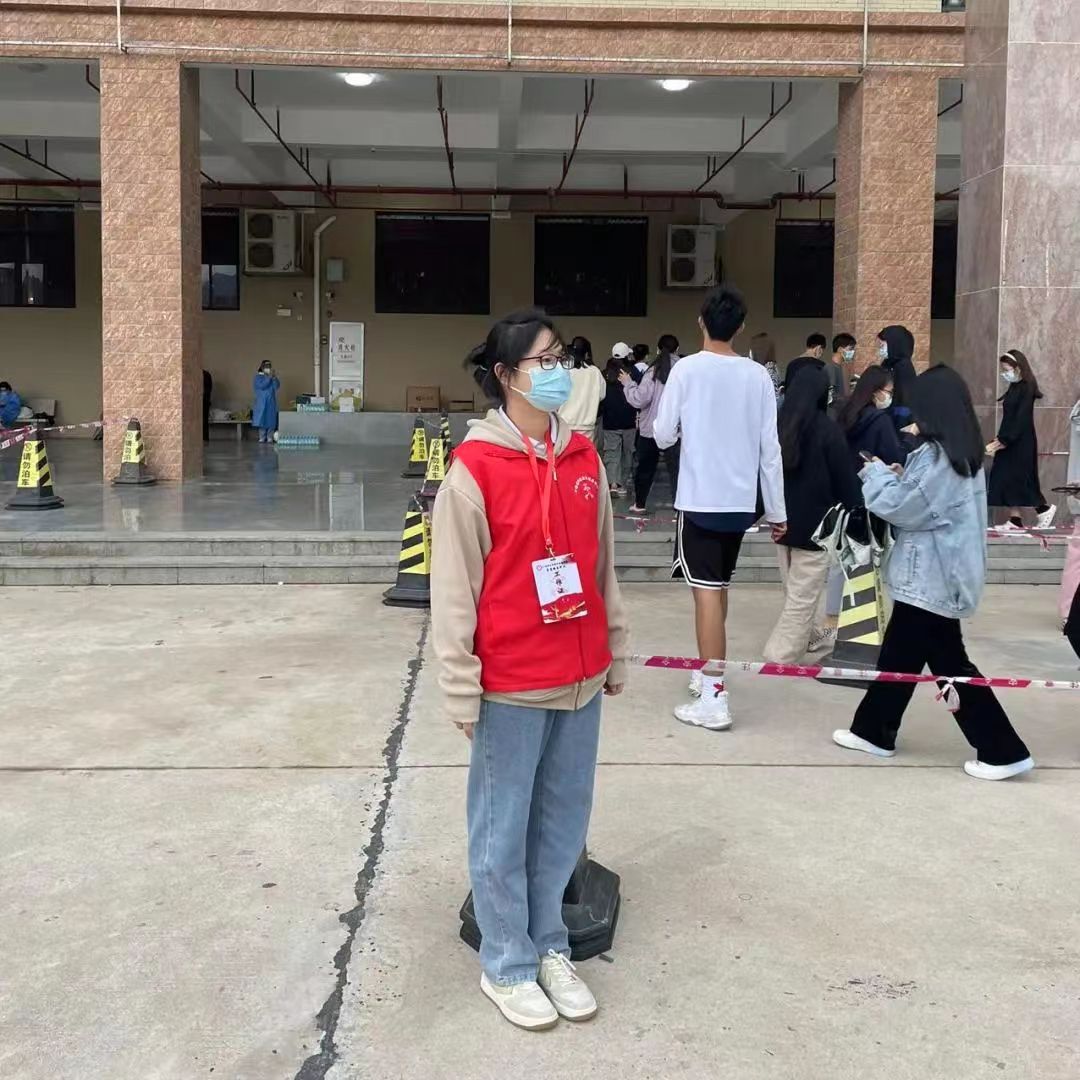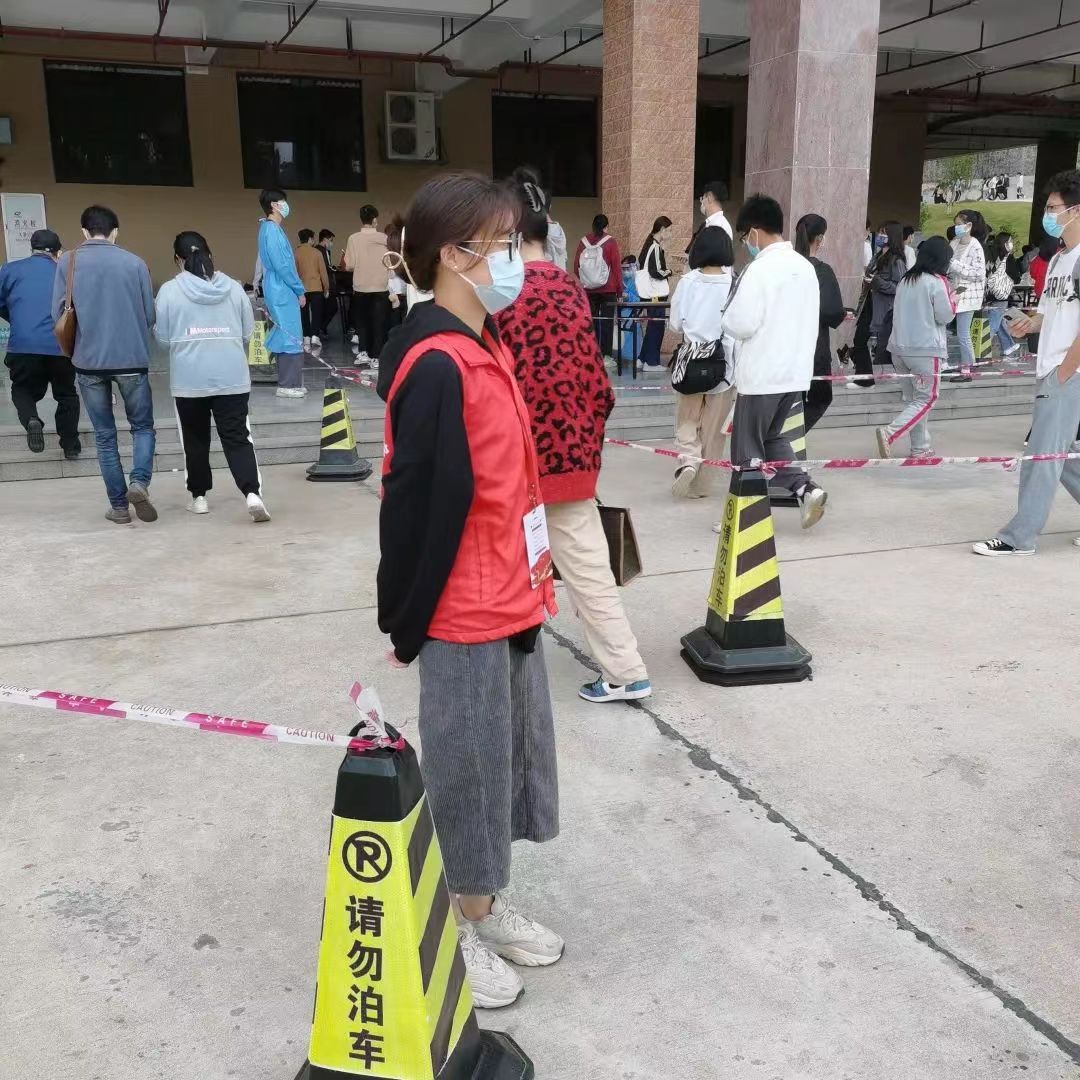 志愿者们以身作则,从自身做起,全程佩戴口罩,引导前来核酸检测的学生们队列式排队,提醒采样同学们提前打开粤核酸码,提高核酸检测效率。在核酸检测中,志愿者们各司其职、尽职尽责、齐心协力,共同维护现场的秩序,全面协助开展核酸检测工作。志愿者们尽己所能为每一位前来检测的师生保驾护航,推动核酸检测工作的安全、有序、高效进行。