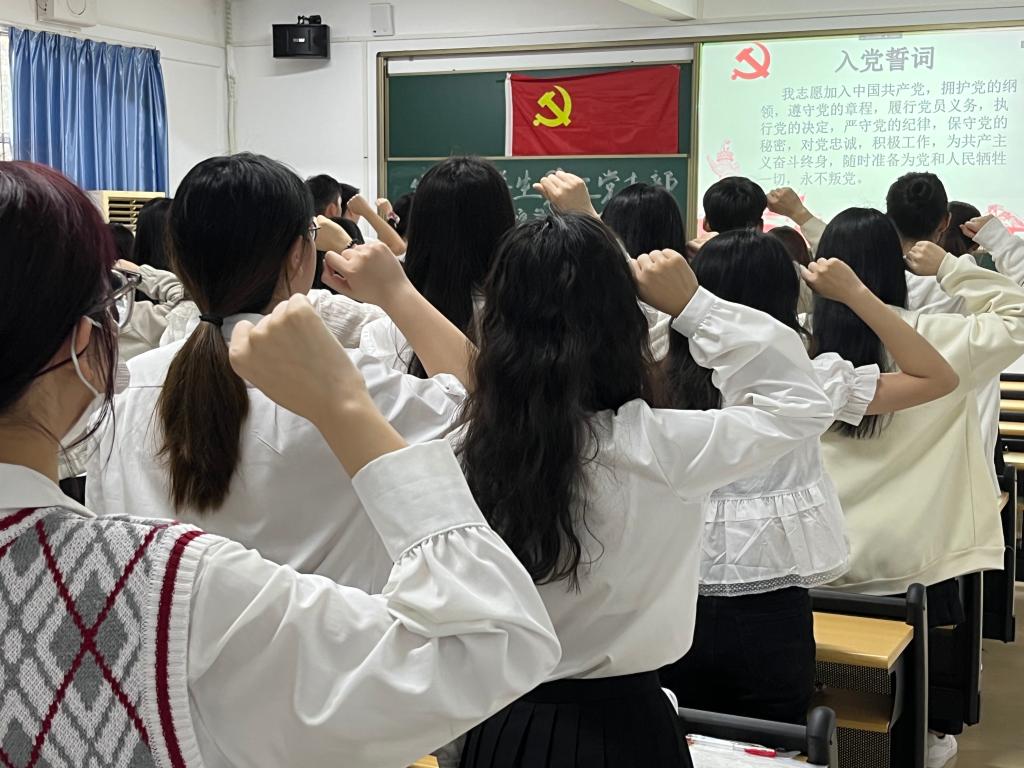随后,学生党支部干事希望预备党员牢记申请入党时的决心和誓言,永远保持先进性,坚定立场,坚持学习永不懈怠。行动是思想的代表,日后无论是在学习还是在工作中,都要继续保持积极主动、吃苦耐劳的精神,时刻起到党员的先锋模范作用,不断用行动锤炼党性,踔厉奋发,奋勇前进。