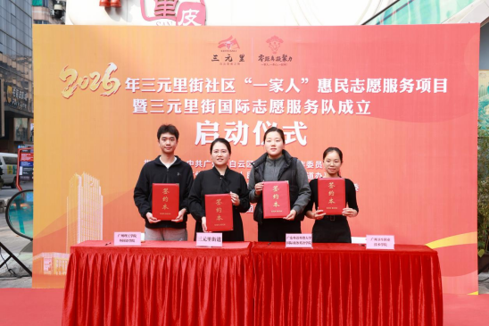为进一步深化基层治理创新,推动志愿服务国际化、专业化发展,2026年1月17日上午,三元里街社区“一家人”惠民志愿服务项目暨三元里街国际志愿服务队成立启动仪式在柏丽NYC广场C座隆重举行。广州理工学院作为共建高校之一,团总支书记关俊文老师代表122cc太阳集成游戏出席仪式,并现场签署校地共建协议,标志着我院在服务地方、实践育人方面迈出坚实一步。