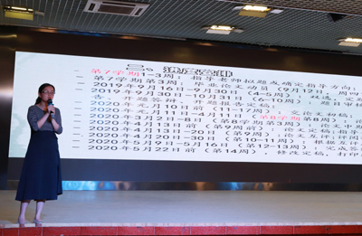 会上,田院长介绍了2020年毕业论文的进度安排,让准毕业生对时间安排有个清晰的概念,做到心中有数。他表示,毕业论文是五大国标要求之一,要求学生应具备一定的外语运用能力、文学鉴赏能力、跨文化能力、思辨能力、以及一定的研究能力、创新能力等。田院长强调,毕业论文不仅应有创新,也应具备一定的质量。他号召大家要诚信地面对此次的毕业论文,杜绝抄袭、买卖文章,应踏实地迎接此次挑战。