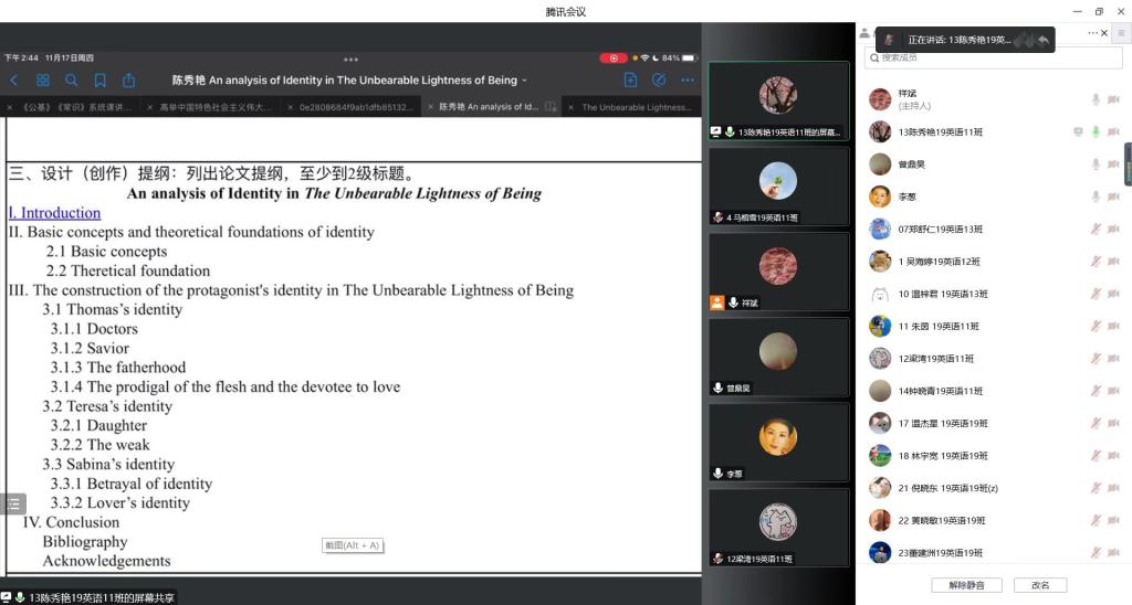 毕业论文开题”云答辩”在同学们及答辩老师持续八个小时的辛苦下顺利完成。希望接下来同学们根据答辩老师建议进行完善开题报告,在疫情期间保质保量完成毕业设计(论文)工作。