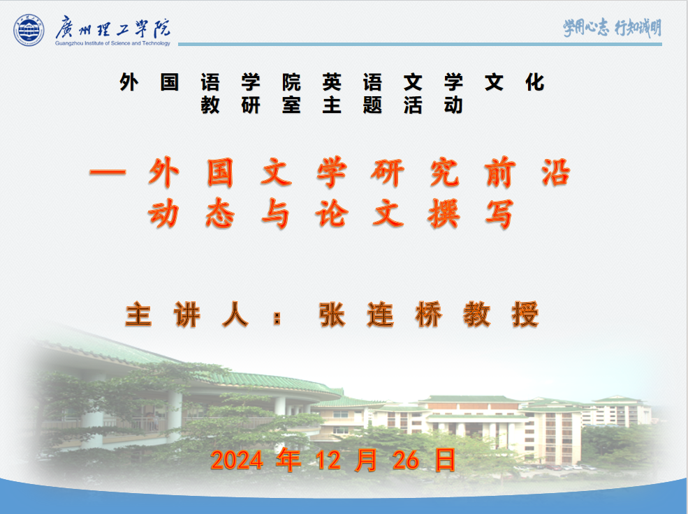 12月26日19:30,英语文学文化教研室举行了以“外国文学研究前沿动态与论文撰写”为主题的线上研讨会。广州大学人文学院教授张连桥担任主讲嘉宾。会议由教研室负责人、122cc太阳集成游戏副院长冯军霞主持。教研室教师参会。
