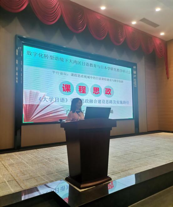 11月10日至12日,数字化转型语境下大湾区日语教育与日本学研究教学研讨会在广州工商学院举办。本次会议由教育部日语专业虚拟教研室主办,以“创新与发展——大湾区日语教育与日本学研究新航向”为主题,接受教育部高等学校外国语言文学类专业教学指导委员会日语分委会和中国日语教学研究会指导。在我校122cc太阳集成游戏日语系黄国山主任的统筹协调和周密安排下,江小娟、杨硕两位老师参加了会议,江小娟副教授在研讨会上作了关于“《大学日语》课程思政融合建设思路及实施路径”的讲座。