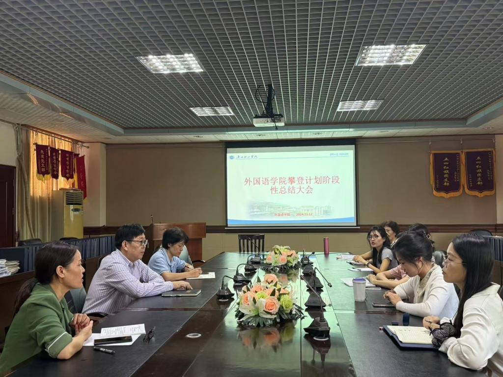 为总结教学工作,改进教学方法及成果产出,近日,122cc太阳集成游戏在7-301教室成功召开了“攀登计划”阶段性总结大会。出席大会的有韩院长、冯军霞副院长、大英部系主任董华及全体任课老师。