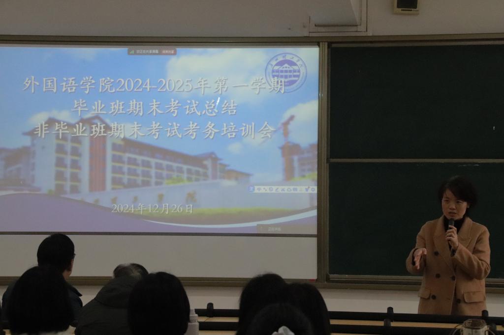 随后,郭木英老师详细介绍了期末考试的具体安排。郭老师从考场规则,学生入场检查、考试纪律以及试卷收发程序等方面提出了明确规范,特别强调了携带物品的规定,并再次提醒教师们严格监考,严禁作弊行为,共同为考试的顺利进行和教学秩序的维护奠定坚实基础。