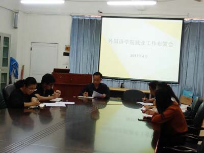 (通讯员:吕宁)为保障2017年度就业工作的顺利开展,切实提高毕业生就业质量,4月5日外国学院学院在综合楼310召开了“就业工作布置会”。学院党支部书记谭玉清、办公室主任蔡岳良、学工干事林妙芳,就业干事吕宁,辅导员李昉、莫凤珍参加了会议。