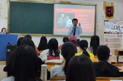 开场环节,Albert老师给应聘者们分享了自己学习英语的视频,并对自身就业发展道路作了介绍。他就大学生就业的问题,向同学们提出疑问,询问应聘者对未来工作的定位,启发他们对英语学习、对自己未来就业的思考。