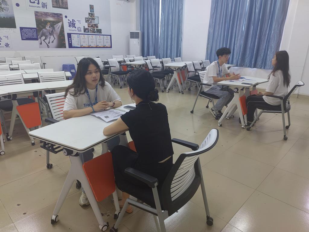 宣讲会的高潮部分是同学们与携程集团进行的一对一面试环节。同学们与携程的招聘代表面对面交流,更加直观地了解企业的运作模式和岗位职责。