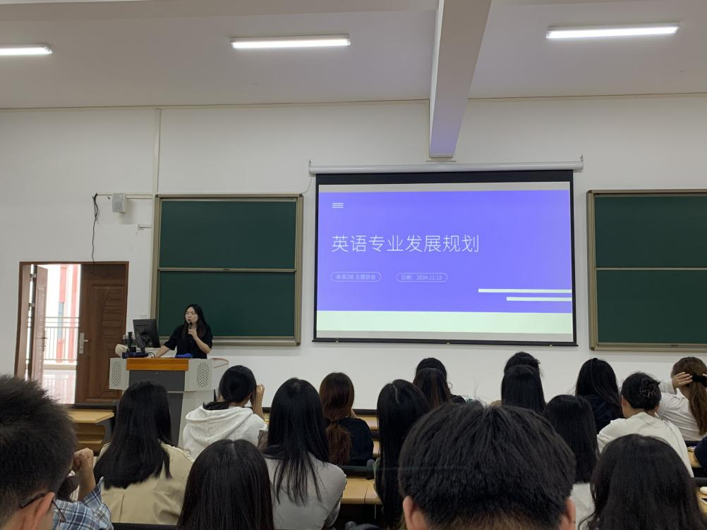 首先,各班导师根据近年国家政策向同学们介绍了考研、读博等学业前进方向,并对其中学制、学费、学科要求和不同专业所学等内容进行了细致地说明,并提出提升绩点的技巧,例如认真备考专四、专八考试,参加学科竞赛,参加大学生创新比赛等,夯实学业基础,从而引导其更好地进行学业规划。此外,班导师们还列举了外语类有名院校、各专业院校排名等,供同学们制定目标。最后,班导师们结合自身经历,给同学们提供了一些关于未来职业规划的建议,引导同学们树立正确的就业观与择业观,并给予同学们心理健康关怀,呼吁同学们减少焦虑,积极融入校园生活与专业学习。