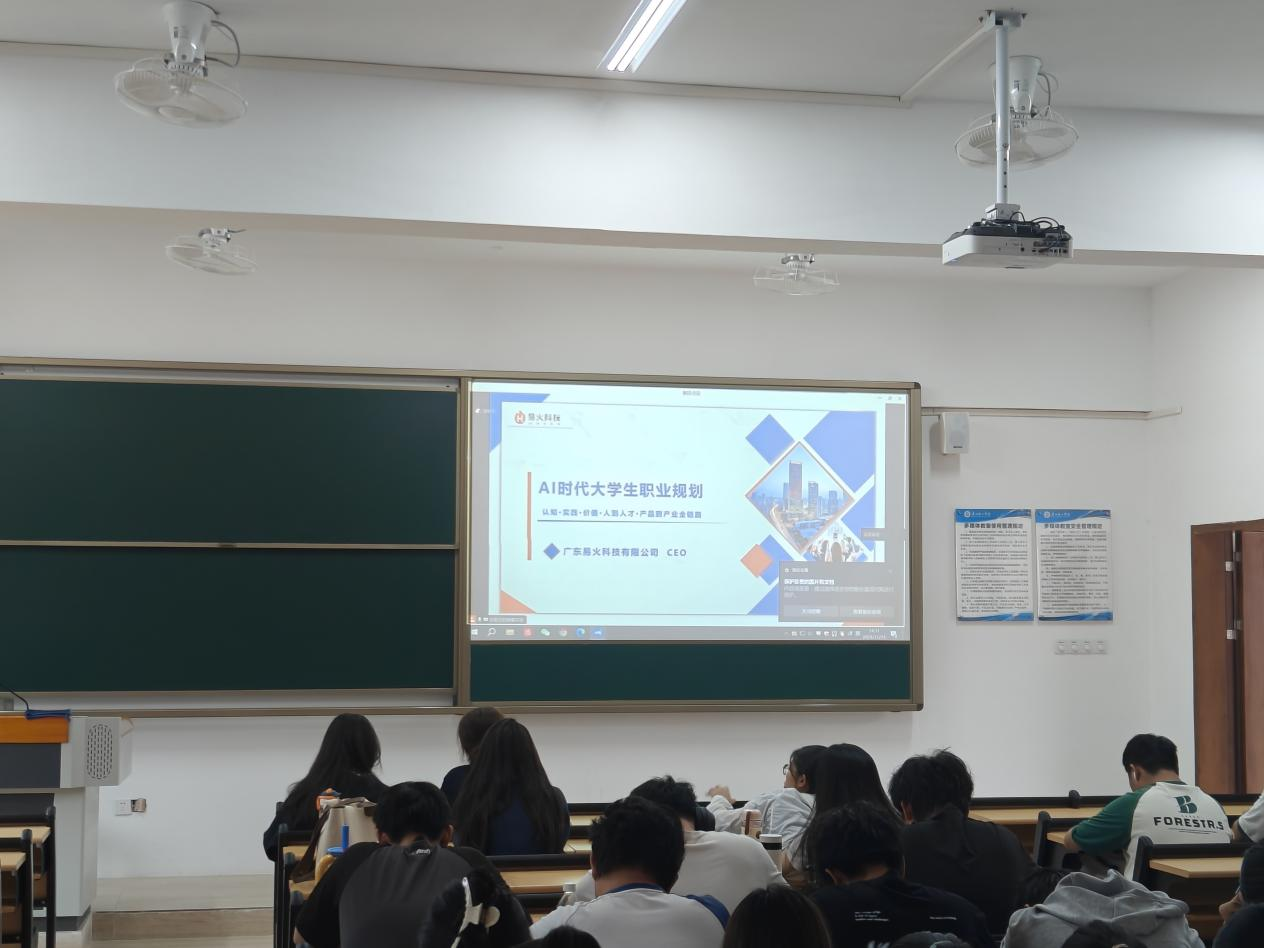 为紧跟时代步伐,激发当代大学生的创新能力,11月14日下午,广东易火科技有限公司CEO张日育莅临我校开展“AI时代大学生职业规划”讲座。我院24级学子通过在线方式参与了讲座。