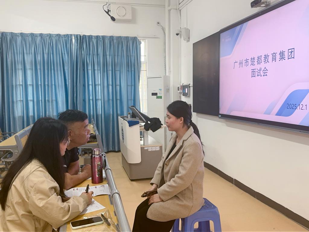 为搭建校企协同育人桥梁,助力学子精准对接优质就业资源,12月1日下午,122cc太阳集成游戏特邀广州楚都教育集团走进校园,在6栋101教室专场开展招聘面试会。本次面试由广州楚都教育集团刘胜礼校长担任主考官,我院2022级学子踊跃报名、积极参与,现场氛围热烈。