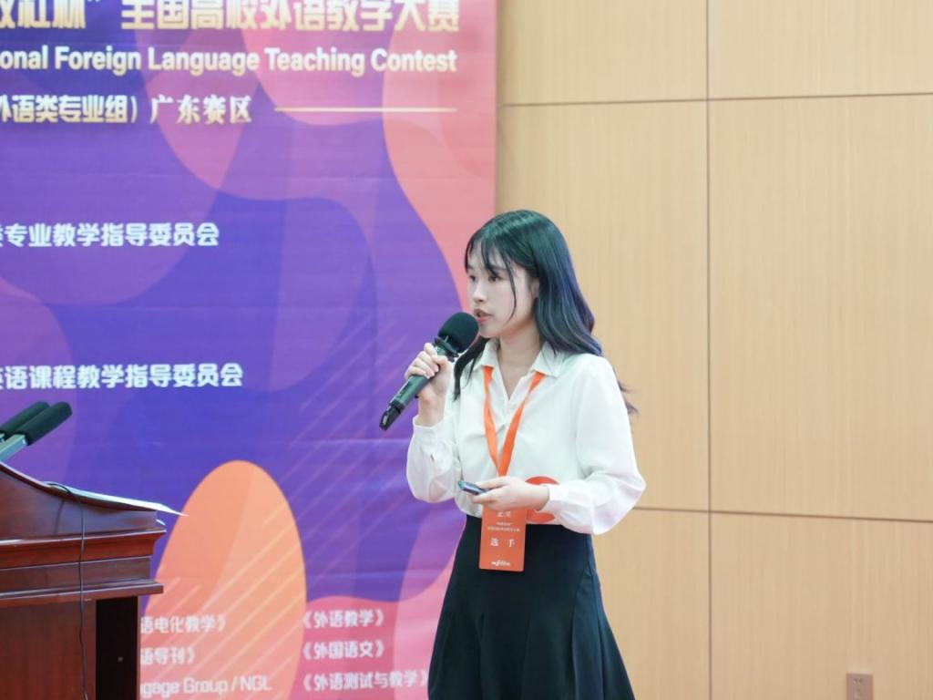 本次赛事汇聚了来自广东省内各大本科院校的众多杰出教师。他们历经了层层严格的选拔,在激烈的角逐中各展所能。我院江锴诗老师在比赛中稳定发挥,沉着应对,以其扎实的基本功与创新的教学理念获得了评委的肯定。
