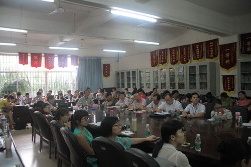为深入贯彻省教育厅有关“创新强校工程”有关文件精神,进一步规范学院管理,提高办学质量,推进特色发展, 6月19日下午,我系“厚基础,重应用,为广东培养合格外语水平人才”中层干部论坛在全体教职工大会上举行。论坛由王培林院长主持。王祖益副院长、杨兰芝副院长及有关职能部门负责人参加了此次会议。