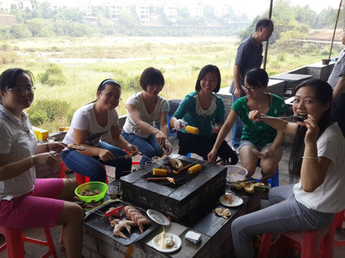 早晨8点,秋高气爽,树叶舒展,迎着初晨的朝阳,伴着凉爽的秋风,一辆满载着外语系教职工的旅游车从门口出发,9点15分左右到达目的地——花都芙蓉村度假村。一路上公路两旁的建筑和田园风光令大家心情激动,路旁茂盛的花草树木散发出的清香,更使大家感到秋天的美好。花都芙蓉村度假村,距离学校车程1小时15分钟左右, 是一家集餐饮、娱乐、休闲为一体的农家乐,这里环境优美,空气清晰,徜徉其中,胜似人间仙境,世外桃源。酒店客房简单温馨,清新自然却又处处透露着酒店的用心。在这里,我们一起进行了烧烤、惊险刺激的漂流、棋牌、集体娱乐做游戏、唱歌等活动。最后的抢凳子比赛把晚上的活动推上了高潮。多么精彩的表演,多么难忘的时光,虽然我们无法阻拦时间的流逝,但是我们可以主宰自己的心情。大家灿烂的笑脸、爽朗的笑声,更加体现出我们天河学院外语系是一个充满活力的集体。