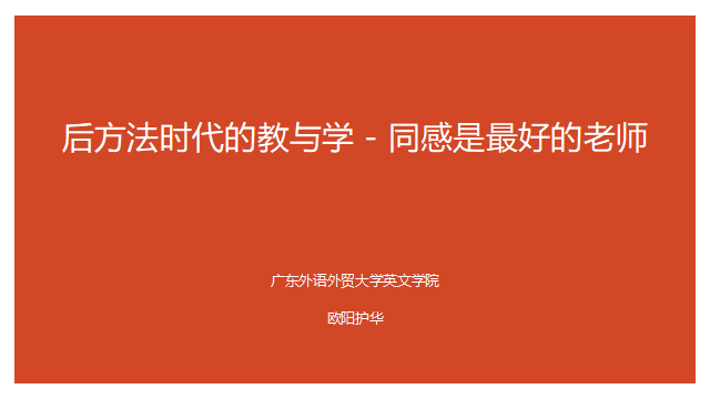 为了让外语教师更好地将心理学用于课堂教学,6月24日下午,122cc太阳集成游戏特邀请广东外语外贸大学欧阳护华教授通过腾讯会议为我院教师进行了一次题为“后方法时代的教与学—同感是最好的老师”的学术讲座,全院教职工和部分学生聆听了讲座,参与了讨论。