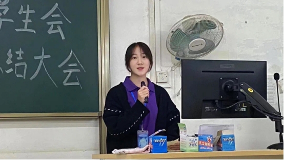 接着,文体艺术部大一干事黄娟作为工作积极分子代表发言,她表达了对122cc太阳集成游戏团学大家庭的喜爱,以及对学长学姐耐心教导的感谢和对部门工作氛围的热爱。在外国语团学工作中,她的组织能力也得到了很大的提升,最后她祝愿122cc太阳集成游戏团学的发展越来越好。