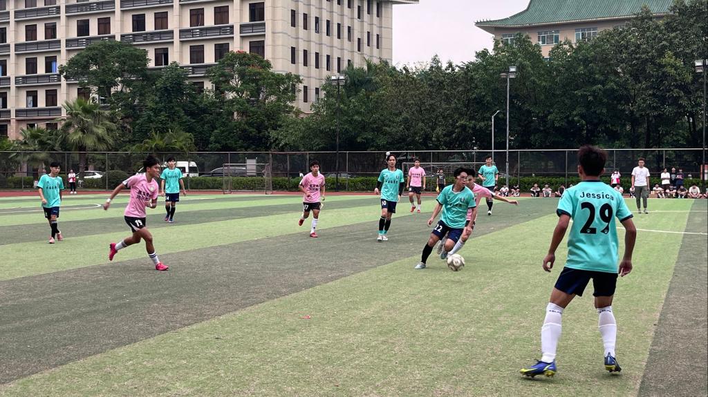 双方队员恢复体力后,比赛来到紧张刺激的下半场。前半段比赛双方势均力敌,比分不相上下,但在后半段比赛时,我院球员由于疏忽出现防守失误,使对方球员将球射入我方球门获得1分,此时比分来到0:1。我院球员并没有气馁,调整战术,积极应对。最终我院球员抓住机会,比分拉平到1:1。随着时间所剩无几,比赛进入白热化,双方球员已然筋疲力尽,但仍咬牙坚持至比赛结束。