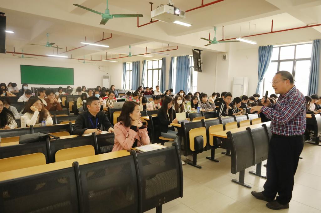 随后,陈南先教授对“口才”展开详细的阐述。陈教授认为口才就是在各种口语交际实践活动中,表达主体运用准确的、得体、恰当、有力、生动、巧妙、有效的口语表达策略,达到特定的交际目的,取得圆满交际效果的口语表达的艺术和技巧。他提出“言之有理、言之有物、言之有序、言之有文”是衡量口才的标准,好的口才可以使原来不相识的人携手,不感兴趣的人相互了解,也可以为人们消除分歧,消除人与人之间的隔阂,还可以治愈人的悲伤,使人快乐地生活。他还向同学们分享提高口才的技巧——“适时、适量、适度”,在说话时,要掌握说话时机,把握好分寸。他相信同学们只要日后多学多用多练口才,那么就像石头可以变成宝石,口才也能点亮人生灿烂的路!