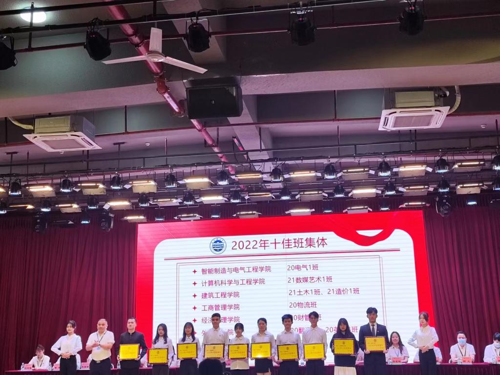 为表彰十佳、先进班集体及优秀班长等优秀集体及个人,发挥榜样示范引领作用,广州理工学院于2023年4月28日在1号报告厅召开2023年优秀学生表彰大会暨学风建设动员大会。出席的领导老师有党委副书记、副校长肖海,党委工作部部长、学生处处长张志红,保卫处处长陈朝阳,校团委书记彭文刚,各二级学院党总支书记,各院辅导员等。本次大会由学生处副处长肖柳主持。我院各班团支书兼班长及部分纪律委员参会。