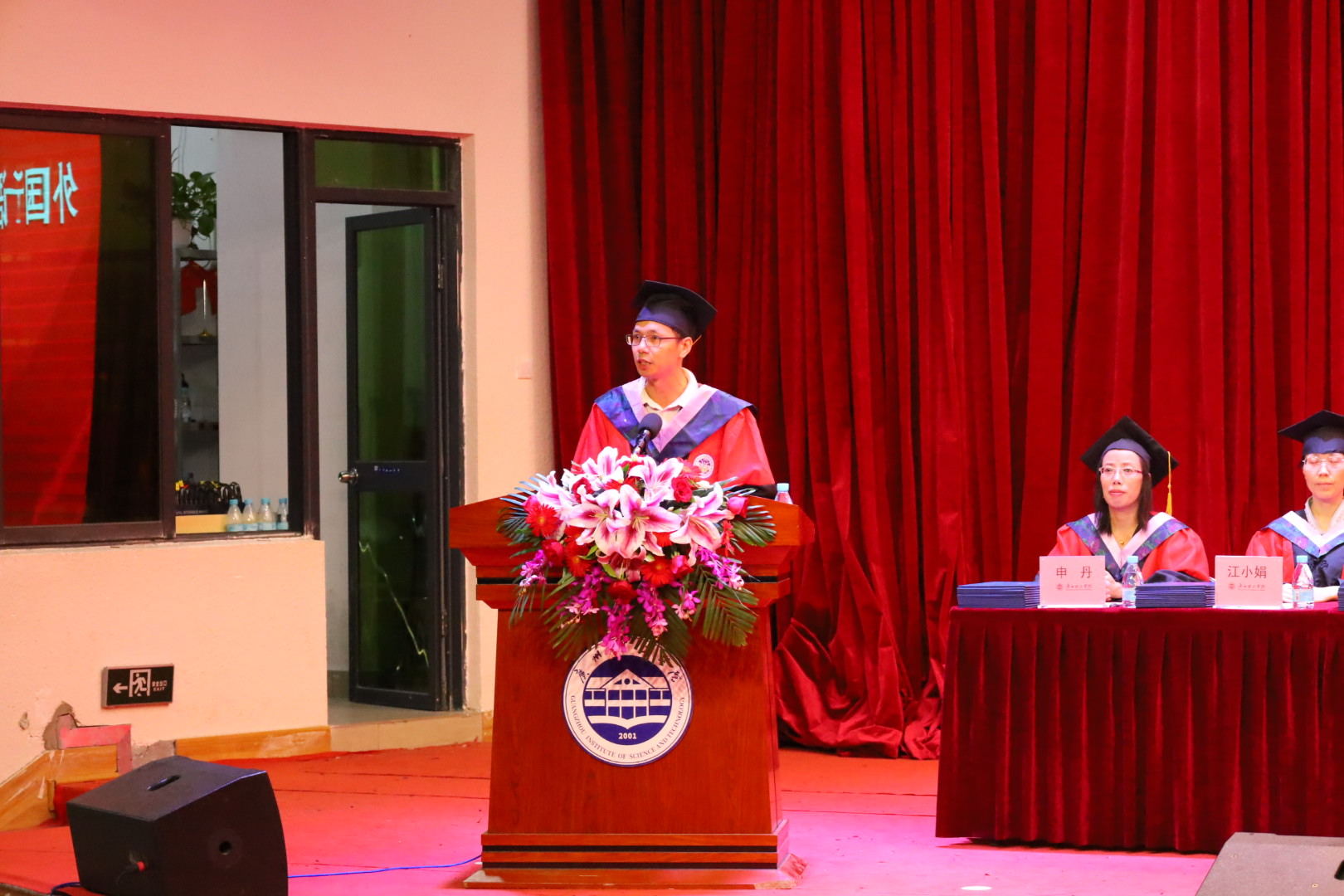 毕业典礼在雄壮的国歌声中拉开序幕。首先,优秀毕业生代表黄泳康同学向学院相关领导、论文指导老师、辅导员和各科科任老师表示衷心的感谢,对所有顺利完成学业的同学表示了祝福。随后其分享了大学生活的经历与感想,同时他希望所有的毕业生在未来工作的路上减少迷茫,以乐观的态度面对困难,脚踏实地,创造出属于自己的天地。最后他祝愿在座的毕业生们能在人生的舞台上散发出耀眼的光彩,成为独一无二的自己,并祝福122cc太阳集成游戏桃李芬芳,广州理工学院更上一层楼。