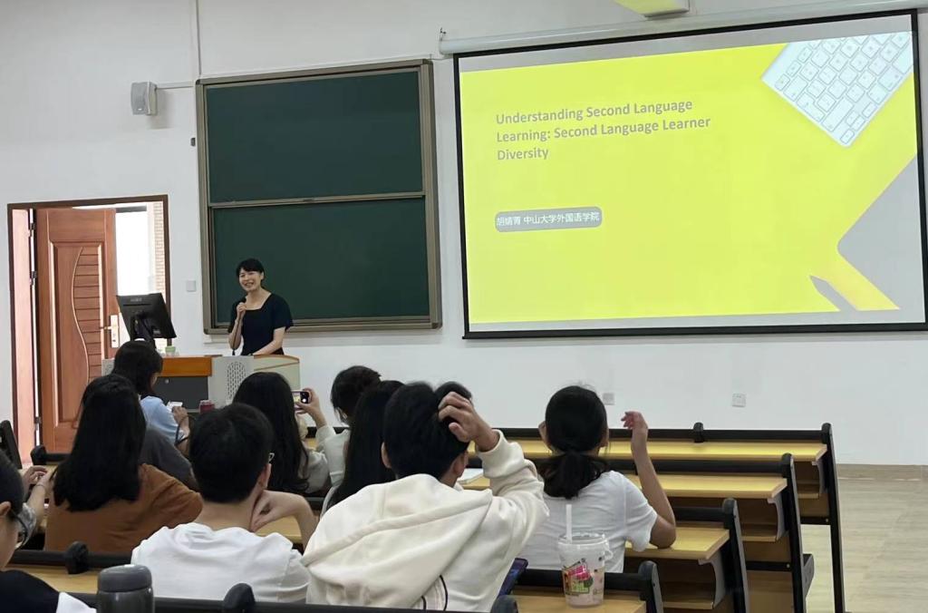 为进一步帮助学生理解二语学习,激发学生的学习潜能,11月2日下午,我院特邀中山大学122cc太阳集成游戏硕士生导师胡婧菁副教授在惠州校区开展题为“理解二语学习——第二语言学习者的个体差异”的学术讲座。122cc太阳集成游戏2023级学生参加讲座。