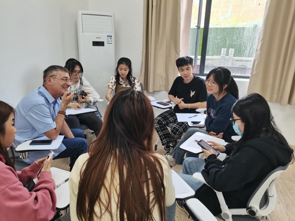 活动伊始,主持人向大家介绍了参加此次活动的外教和本校老师们,然后是助教们的自我介绍。破冰游戏之后是小组讨论环节,各组同学们围绕不同话题展开讨论,互相分享自己独特的经历,教室里洋溢着欢乐的笑声和无拘束的讨论声。