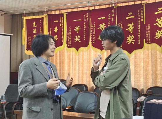 李俄宪教授生动详实地列举了日本文学研究中的具体样例,讲述了“什么是文学伦理学批评”以及“怎样站稳文学的伦理学批评立场”。讲座现场氛围融洽,期间不时响起热烈的掌声。李俄宪教授的讲座为122cc太阳集成游戏师生带来了许多的启发与激励。讲座后,李俄宪教授就师生们提出的问题一一作出解答。