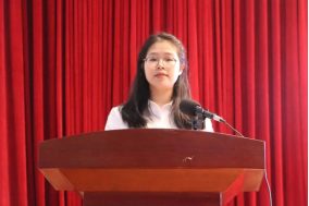 其次,她对过去的一学年的工作进行了总结回顾。英语演讲大赛、英语话剧大赛等学术比赛端正了同学们的学习态度,养成了“惜时、勤学”和自觉遵守校纪校规的良好学风;新生杯篮球赛、“十大歌手”比赛等文体活动丰富了广大同学的课余体育文娱生活,繁荣了校园文化。她认为,存在的问题和不足,需要全体团学成员的共同持久努力、切实奋斗来解决。此外,她还汇报了团总支·学生会本学年的财务情况。