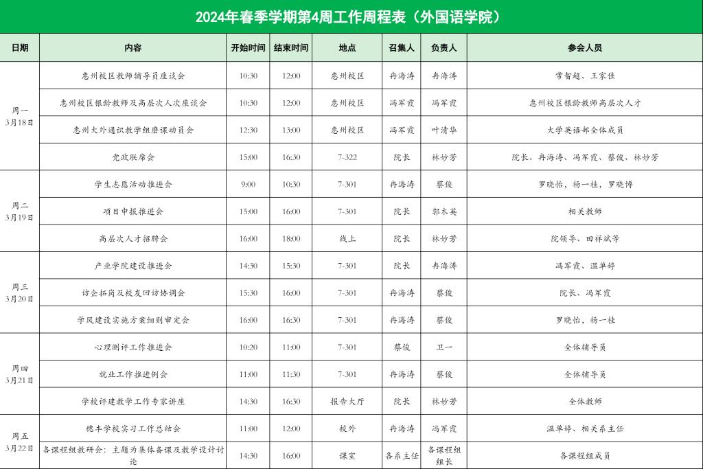 122cc太阳集成游戏2024年春季学期第4周工作周程表