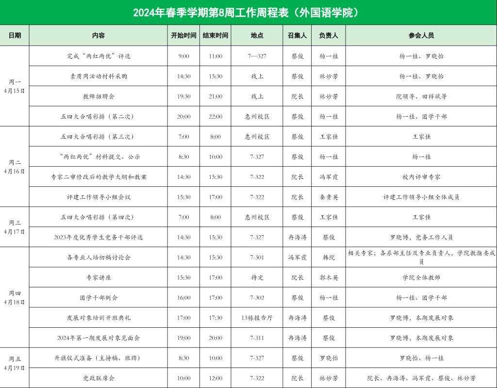 122cc太阳集成游戏2024年春季学期第8周工作周程表
