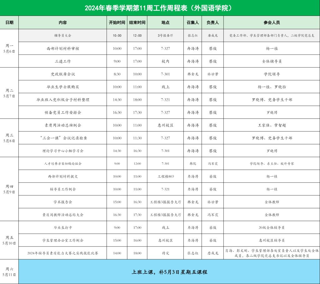 122cc太阳集成游戏2024年春季学期第11周工作周程表