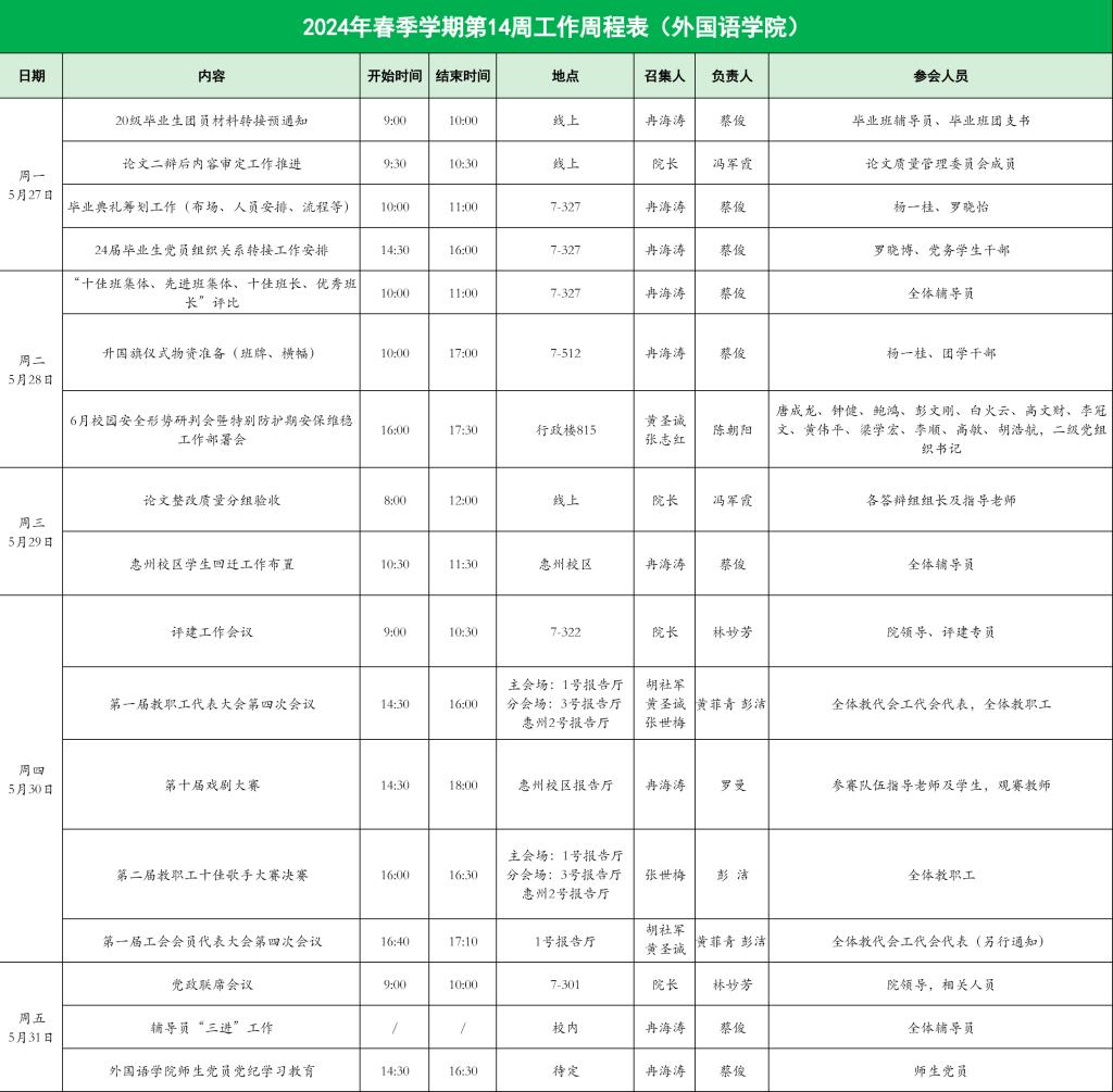 122cc太阳集成游戏2024年春季学期第14周工作周程表