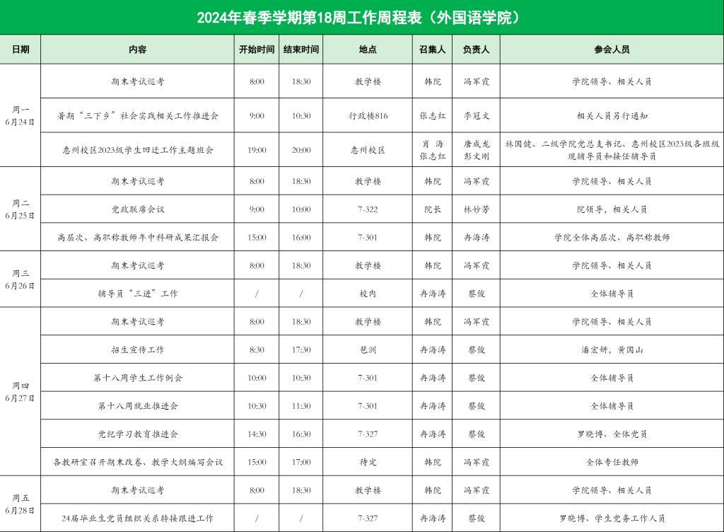 122cc太阳集成游戏2024年春季学期第18周工作周程表