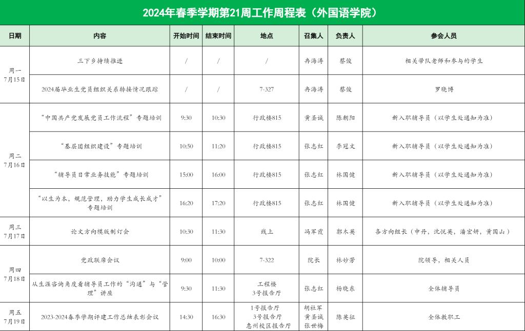 122cc太阳集成游戏2024年春季学期第21周工作周程表
