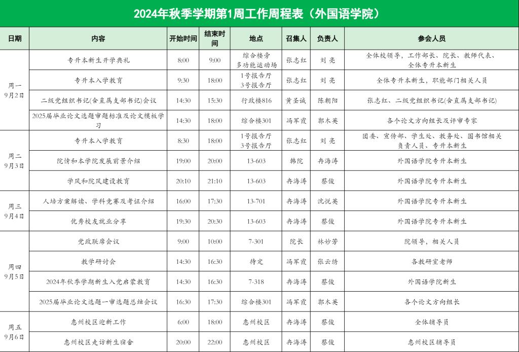 122cc太阳集成游戏2024年秋季学期第1周工作周程表