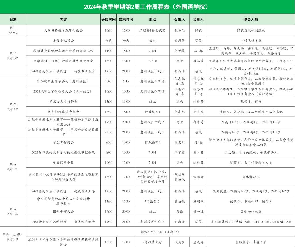 122cc太阳集成游戏2024年秋季学期第2周工作周程表