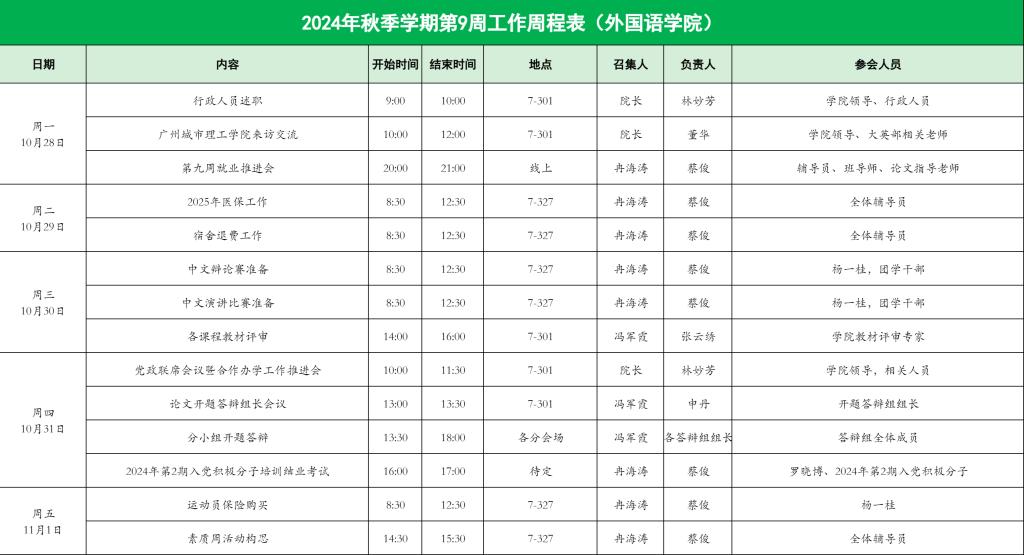 122cc太阳集成游戏2024年秋季学期第9周工作周程表