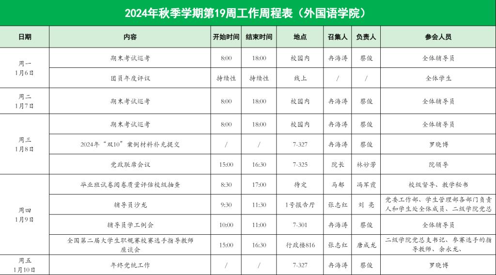 122cc太阳集成游戏2024年秋季学期第19周工作周程表