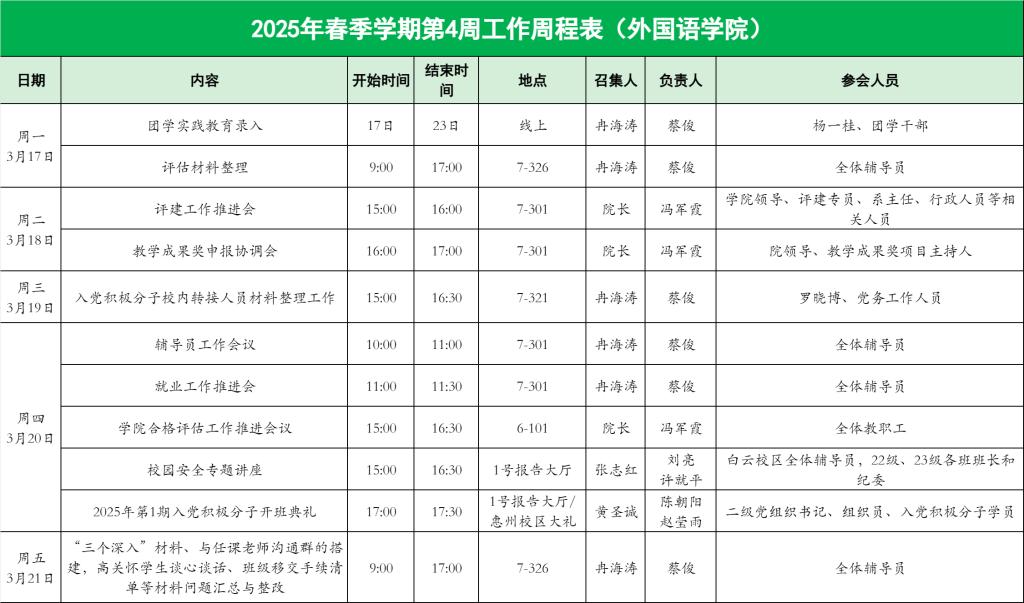 122cc太阳集成游戏2025年春季学期第4周工作周程表