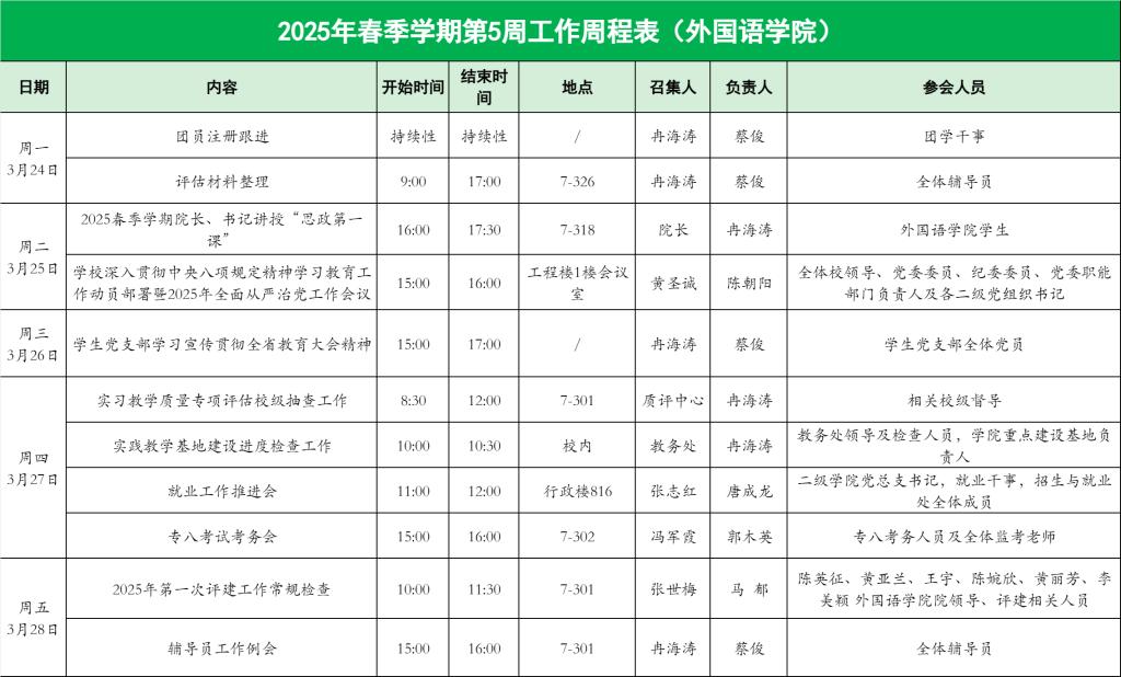 122cc太阳集成游戏2025年春季学期第5周工作周程表