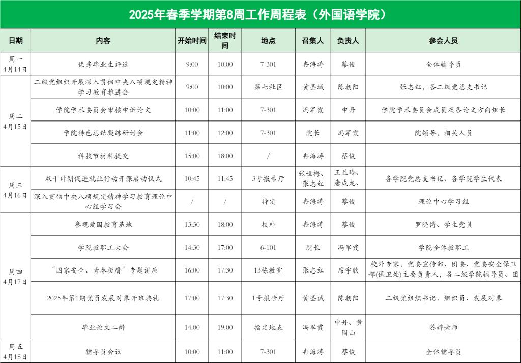 122cc太阳集成游戏2025年春季学期第8周工作周程表