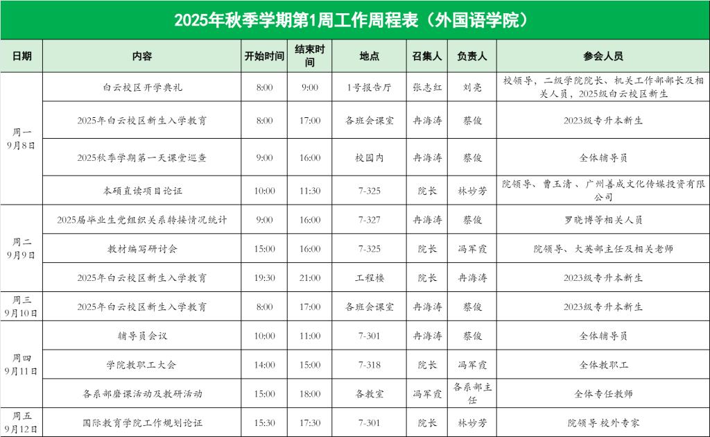 122cc太阳集成游戏2025年秋季学期第1周工作周程表